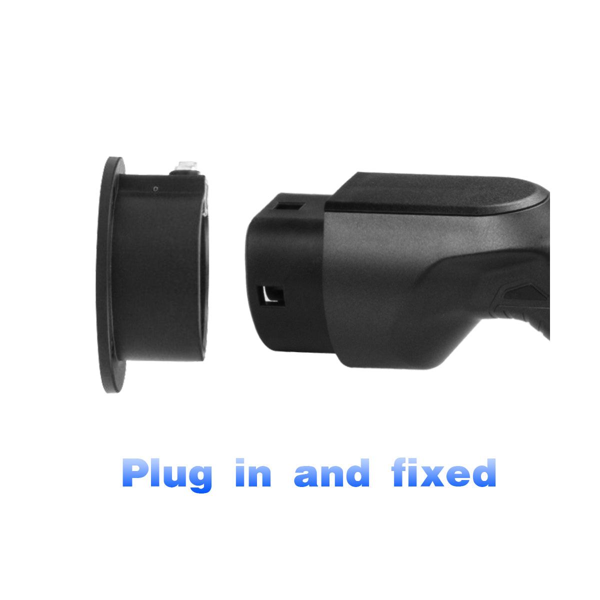 Настінний пластиковий тримач для зарядного штекера Type 2. Універсальний тримач із заводського міцного пластику з отворами для фіксування в стіні. Необхідний аксесуар, щоб штекер не бився об підлогу чи асфальт. Фіксація по кнопці.