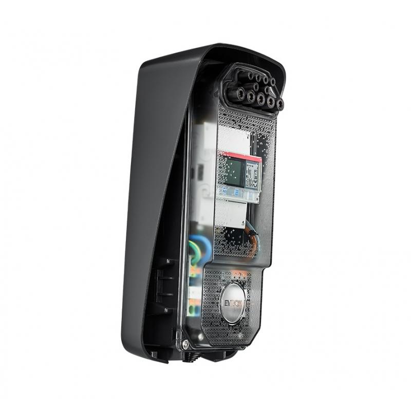 Умная домашняя зарядная станция на паркинг, для офиса или в гараж. Имеет влаго- и пылезащиту, можно закрепить на забор во дворе. Имеется приложение для управления по Bluetooth Low energy 4.2 с Android/iOS. Универсальная розетка Type2 на три фазы, счетчик энергии, контроль утечки тока и качества земли, большой силовой контактор - это это в дизайнерском корпусе.